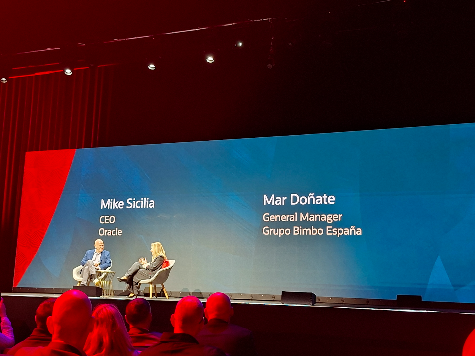 Mar Donate, General Manager of Grupo Bimbo Espana, joined Mike Sicilia on stage to share how one of the world's largest bakery companies is leveraging Oracle Cloud for their digital transformation journey.